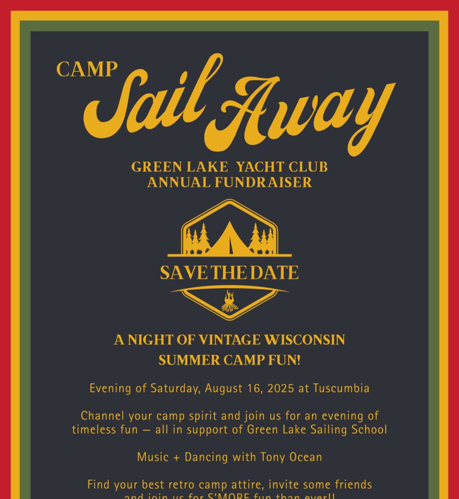 On August 16th at 6:30pm, come enjoy an evening at Camp Sailaway. All proceeds benefit the Green Lake Sailing School.